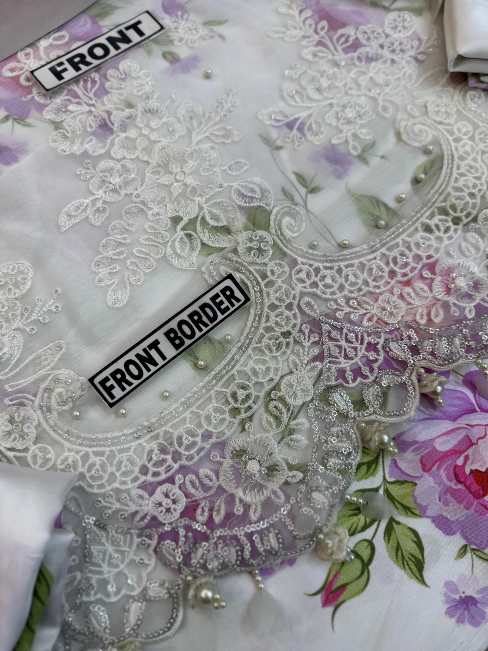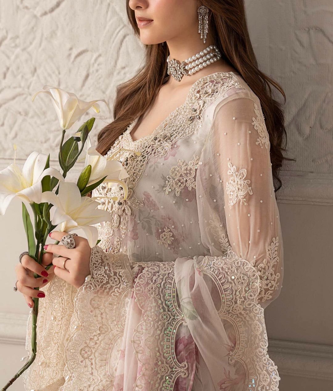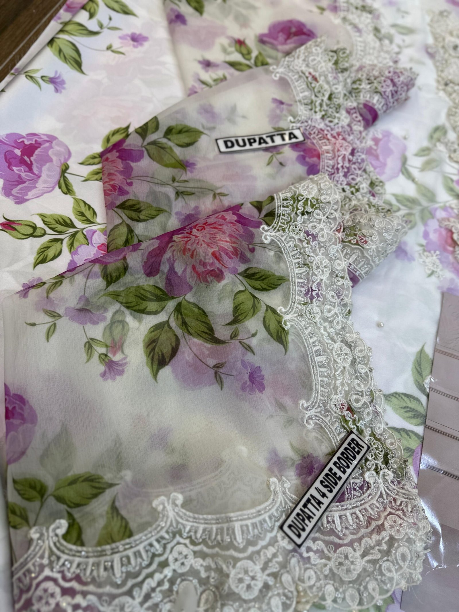 Premium Fabric Mix: Features high-quality Chiffon for the shirt paired with soft, breathable Digital Printed Silk for the dupatta and trousers.
