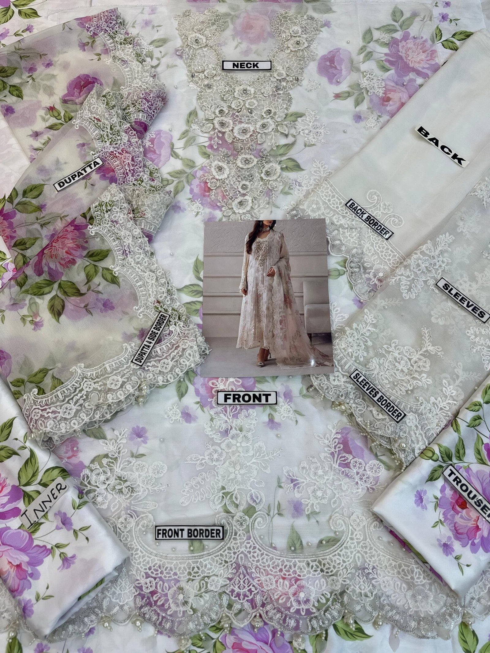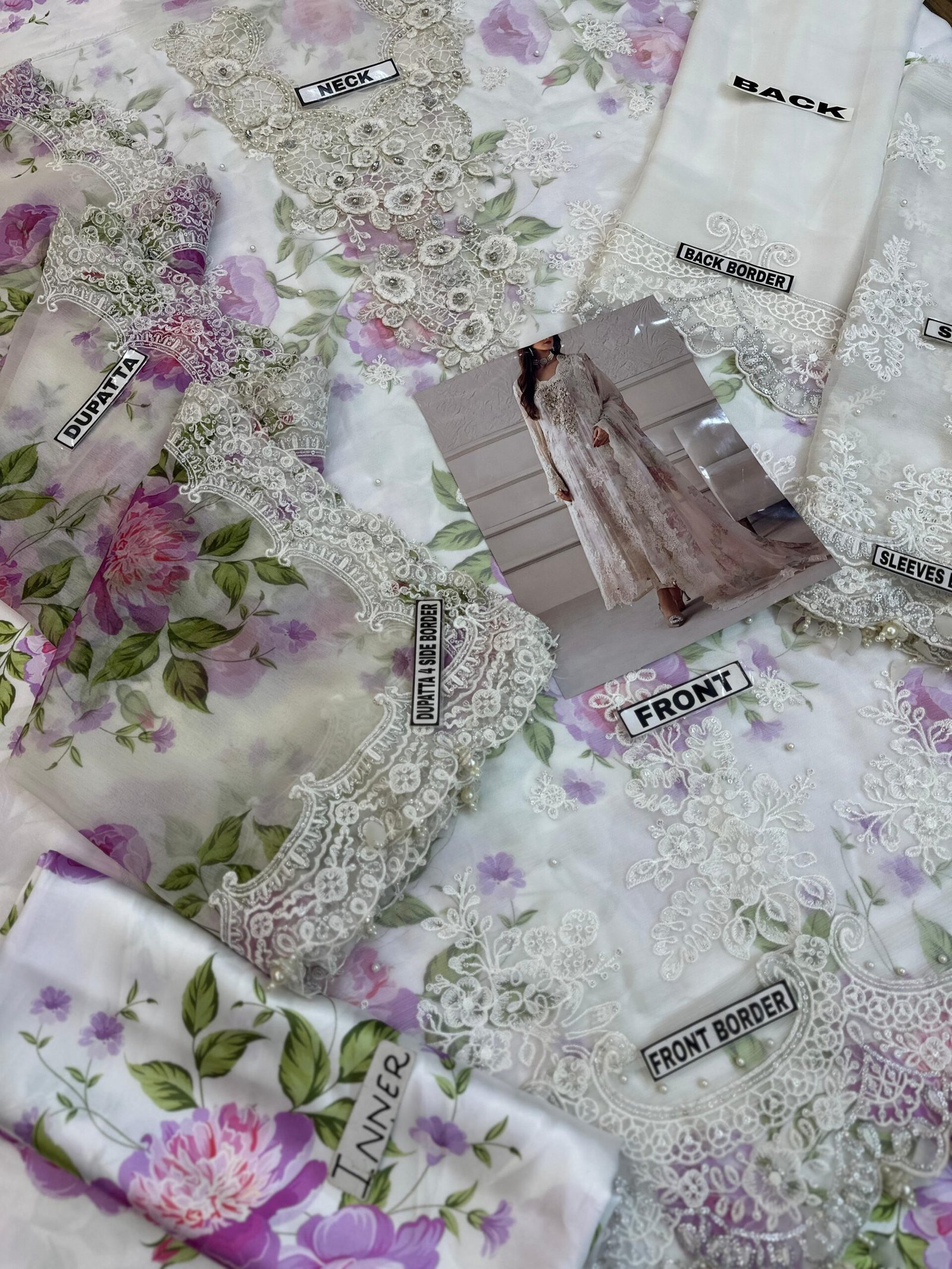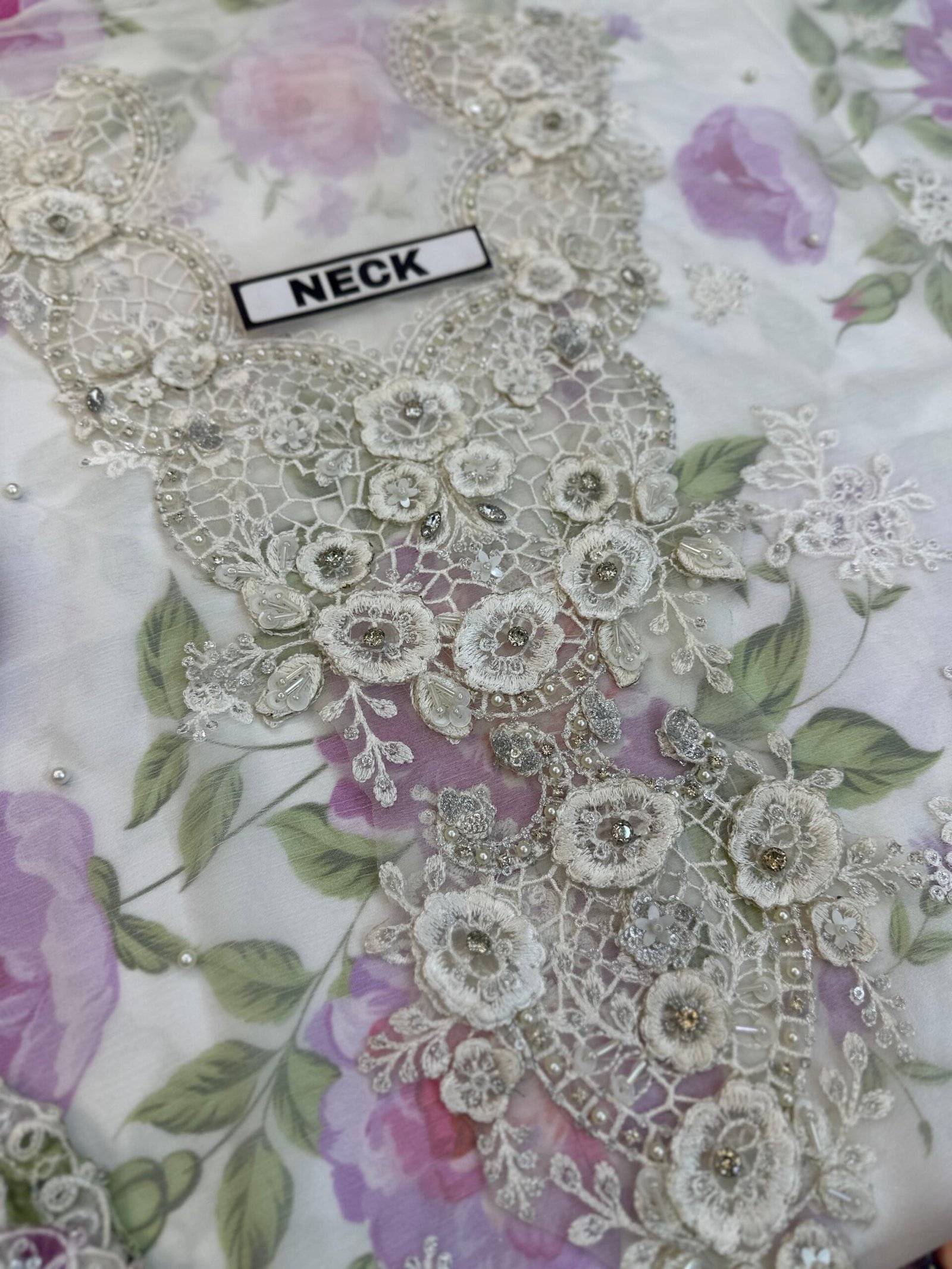 Premium Fabric Mix: Features high-quality Chiffon for the shirt paired with soft, breathable Digital Printed Silk for the dupatta and trousers.