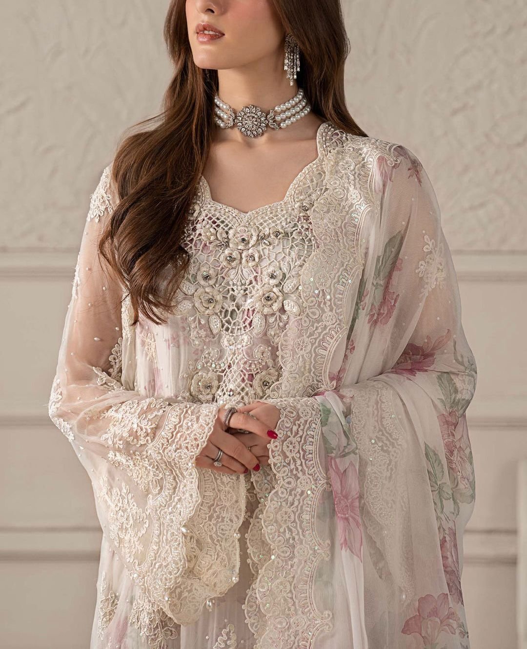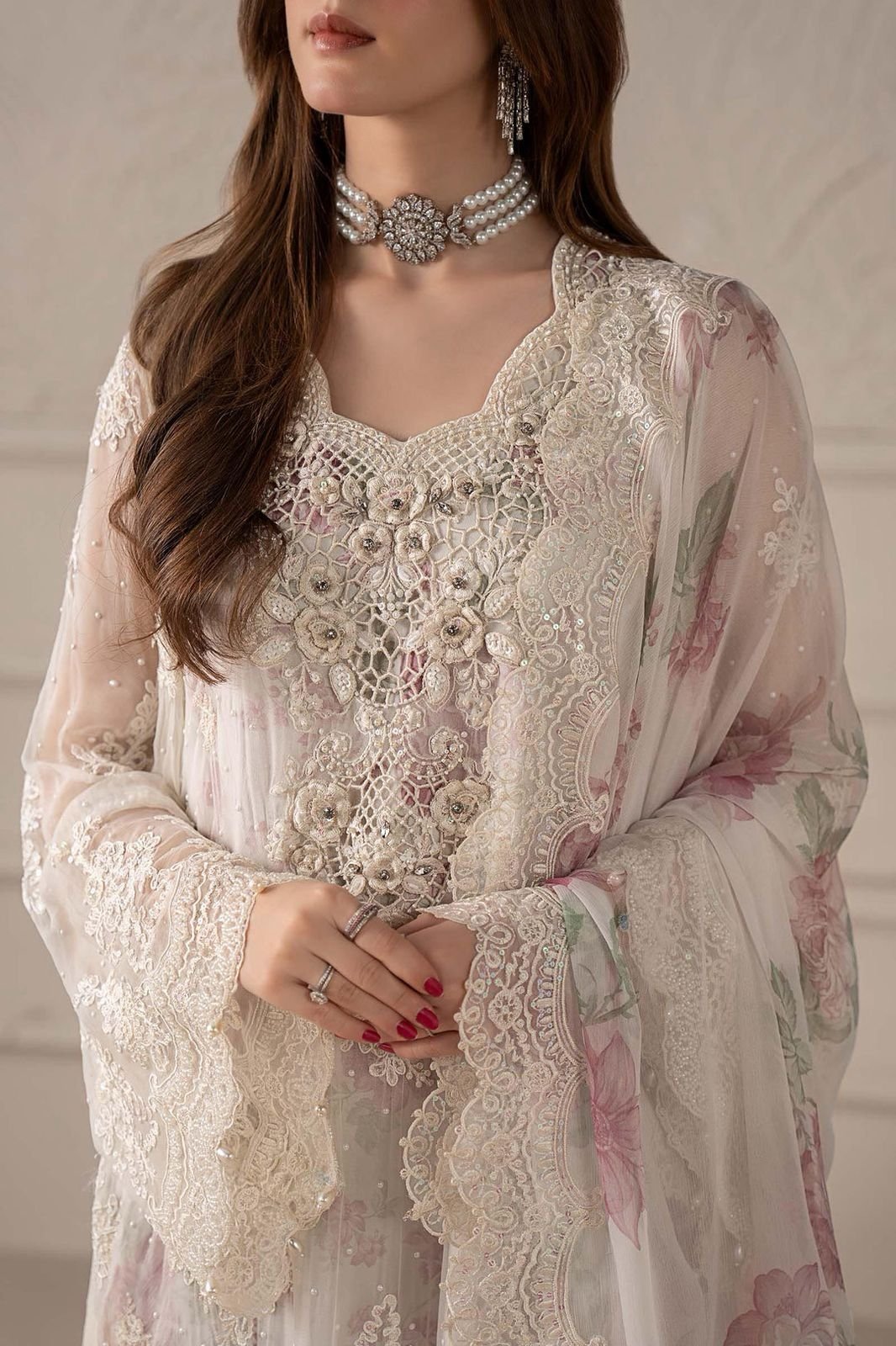 Experience Elegance Like Never Before! AM Cothedge & Products brings you this breathtaking Maria B Luxury Chiffon masterpiece. Designed for those who never compromise on quality, this 3-piece suit combines traditional craftsmanship with modern digital prints, making it a must-have for your wardrobe.